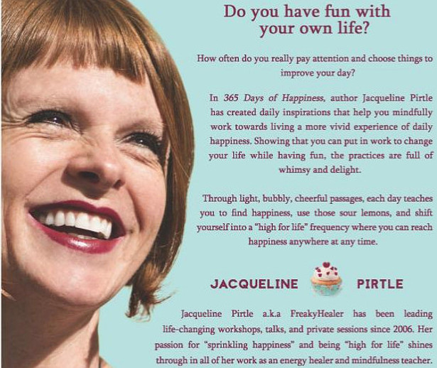 BOOK! Jacqueline Pirtle, 365 Days of Happiness. Because Happiness is a Piece of Cake !